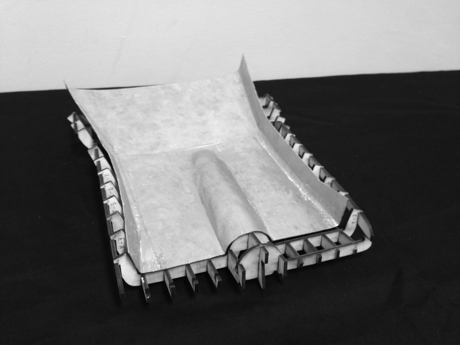 The process of metal shaping for this interdisciplinary object was relatively easier to fabricate due to its simple shape with not too many 'movements' in profile. The difficulty of this object rose from the central curve of the shovel shape, which was quite small and therefore has a higher degree of curvature with the space that is available. This skin was relatively close to that of the template, with the curves matching quite well. The difficulty to replicate this shape does not stem from the shovel's dimensions or overall profile, but due to the method in which shovels are manufactured. As shovel blades are heated, pressed in machinery and other equipment, it is quite difficult to replicate the shape of the shovel using metal shaping tools and processes which are mainly catered towards more curved and organic shapes.